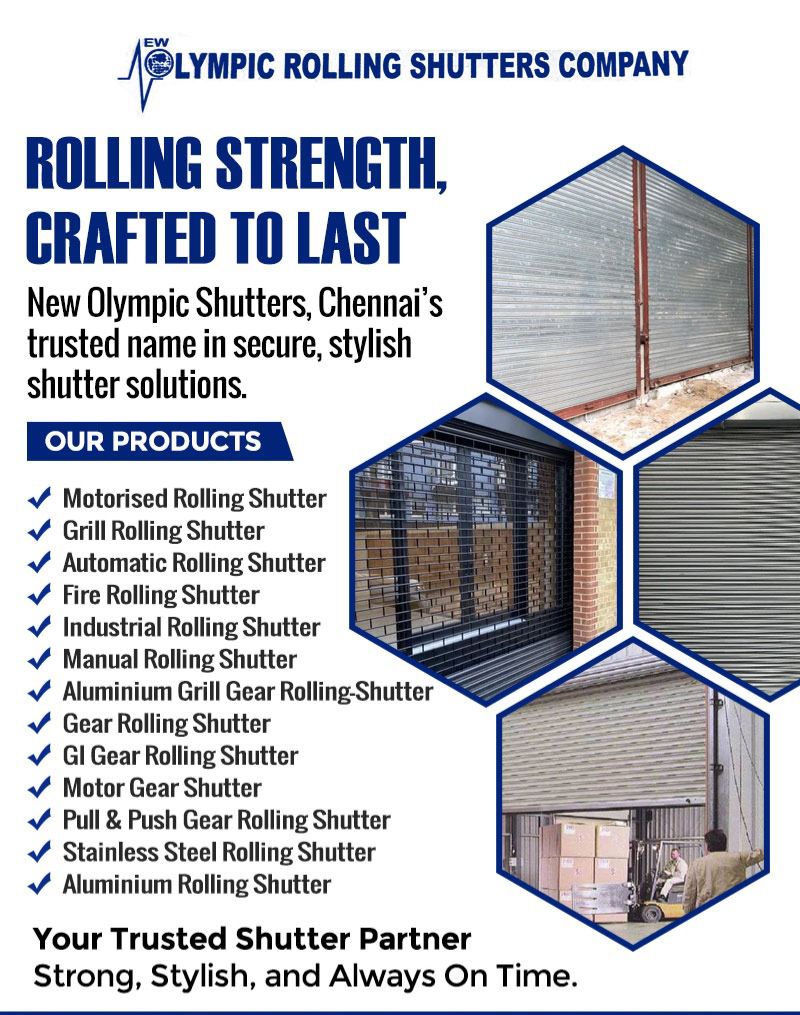 Welcome to ๐๐๐ฐ ๐๐ฅ๐ฒ๐ฆ๐ฉ๐ข๐ ๐๐จ๐ฅ๐ฅ๐ข๐ง๐ ๐๐ก๐ฎ๐ญ๐ญ๐๐ซ ๐๐จ๐ฆ๐ฉ๐๐ง๐ฒ, a name synonymous with durability, innovation, and trust in Chennaiโs shutter industry for nearly four decades. Established in ๐๐๐๐ and Situated in Kodungaiyur, we are proud to be one of the cityโs leading ๐ฆ๐๐ง๐ฎ๐๐๐๐ญ๐ฎ๐ซ๐๐ซ๐ฌ, ๐ฐ๐ก๐จ๐ฅ๐๐ฌ๐๐ฅ๐๐ซ๐ฌ, ๐๐ง๐ ๐ซ๐๐ญ๐๐ข๐ฅ๐๐ซ๐ฌ ๐จ๐ ๐ฉ๐ซ๐๐ฆ๐ข๐ฎ๐ฆ ๐ซ๐จ๐ฅ๐ฅ๐ข๐ง๐ ๐ฌ๐ก๐ฎ๐ญ๐ญ๐๐ซ๐ฌ ๐๐ง๐ ๐ฌ๐ก๐ฎ๐ญ๐ญ๐๐ซ ๐๐๐๐๐ฌ๐ฌ๐จ๐ซ๐ข๐๐ฌ.